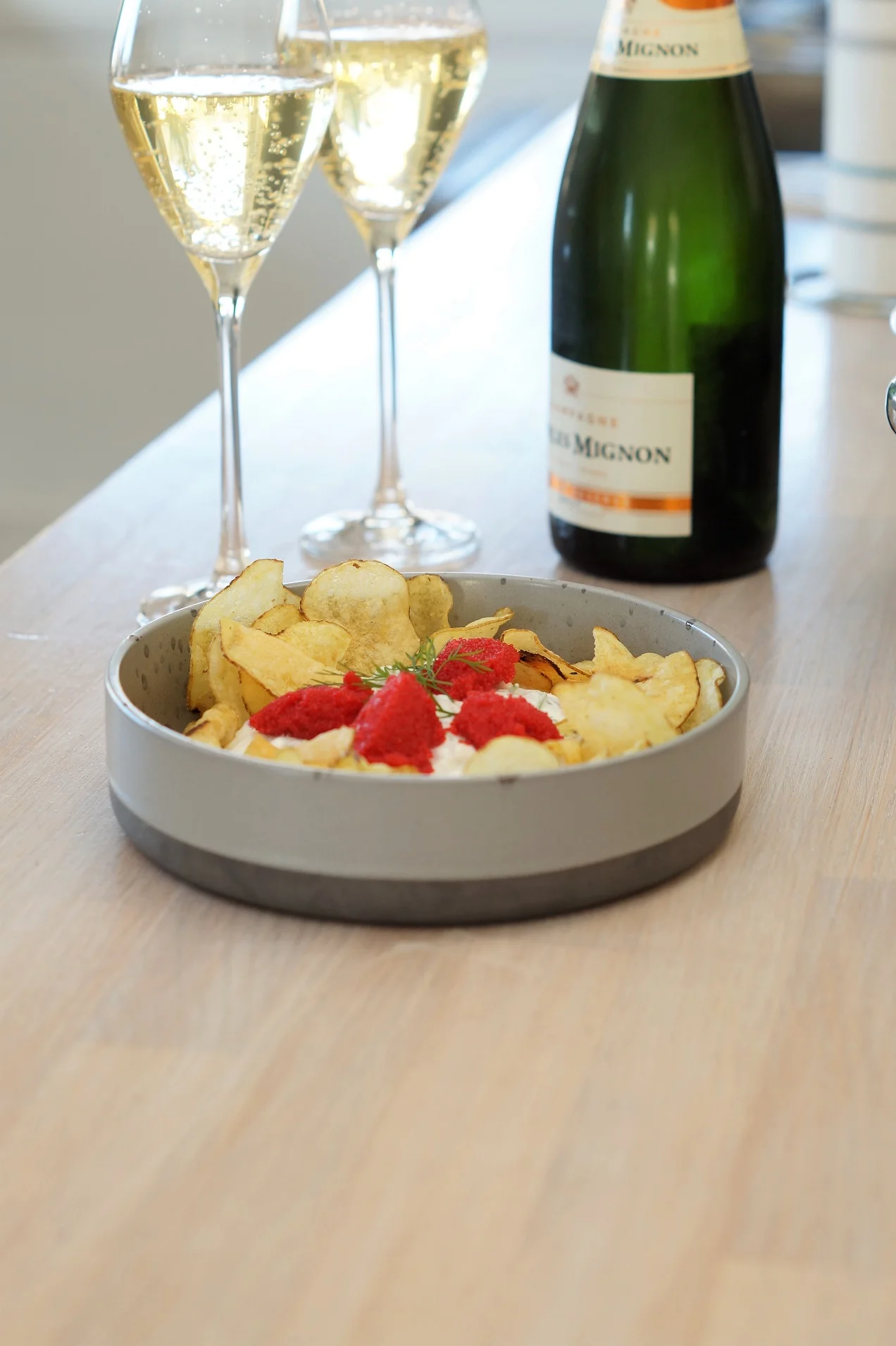 Et litt mer sofistikert, men forbausende godt alternativ til chips og dipp, er en rognrøre med crème fraiche og rødløk. Den passer perfekt som smårett på et tapasbord eller når barna har lagt seg på fredagskvelden.