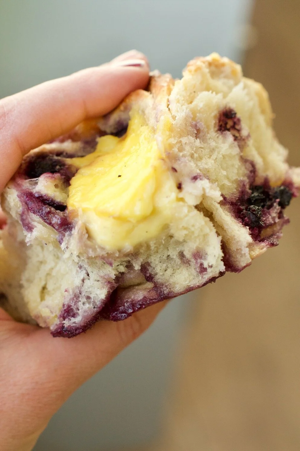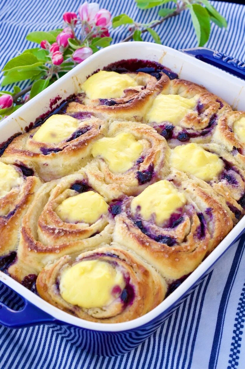 Blåbær gir litt frisk smak til gjærbaksten uten at ta over. Barna syntes vaniljekremen var det beste og spiste mest midtpartiet. Det ble mye gjærbakst på oss denne uken, men det gjorde ikke noe. De her var gode også dagen etter.