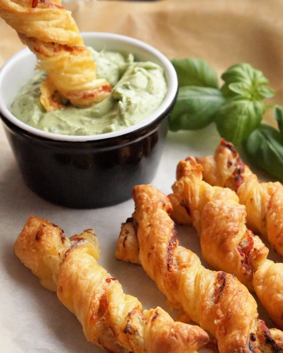 Dette er den perfekte småretten til nyttårschampagnen. De er enkle å forberede og går å steke i god tid i forvei, siden de ikke trenger å være varme når man serverer de. Man kan fylle de med hva man ønsker. Jeg brukte spekeskinke og vellagret ost i mine. Avokadokremen får masse god smak fra både hvitløk og urter og passer perfekt å dyppe stengene i.