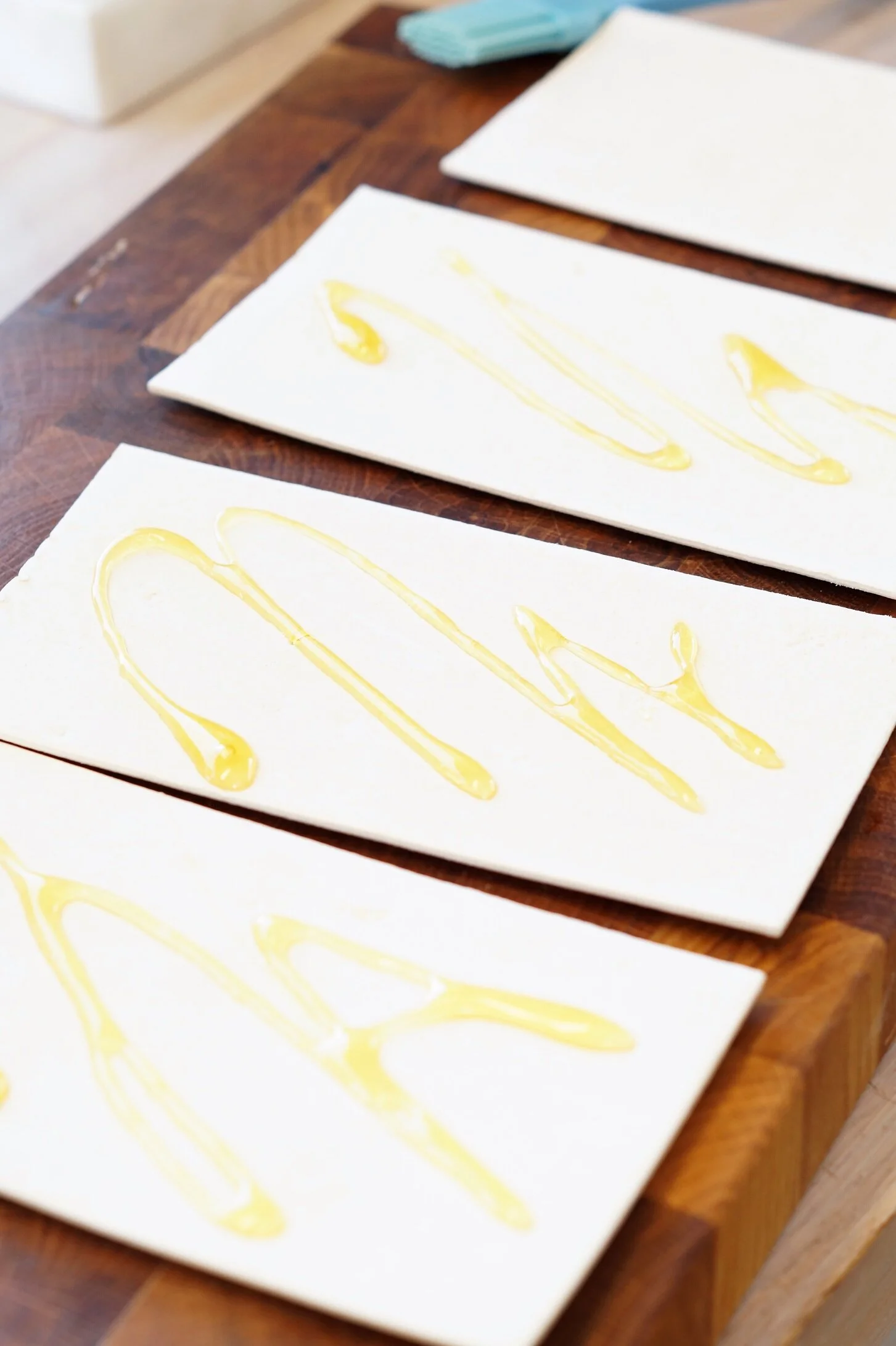 Ha litt sirup på smørdeigsplatene, slik at du kan sette de sammen