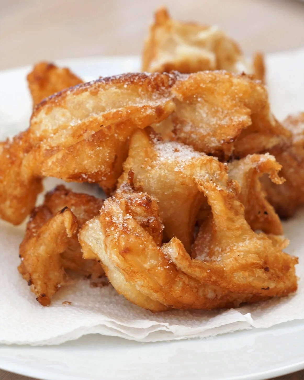 4. Ta de opp når de er gylne, og legg de på papir slik at overflødig olje absorberes. Det som ble til overs av deigen er det bare å legge i den varme oljen og fritere på begge sider, så har du superluftige churros.
