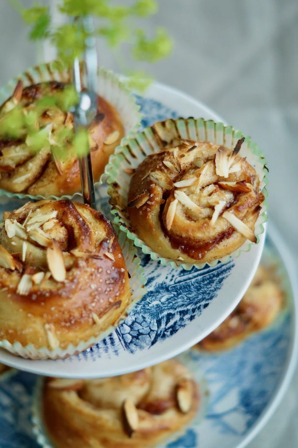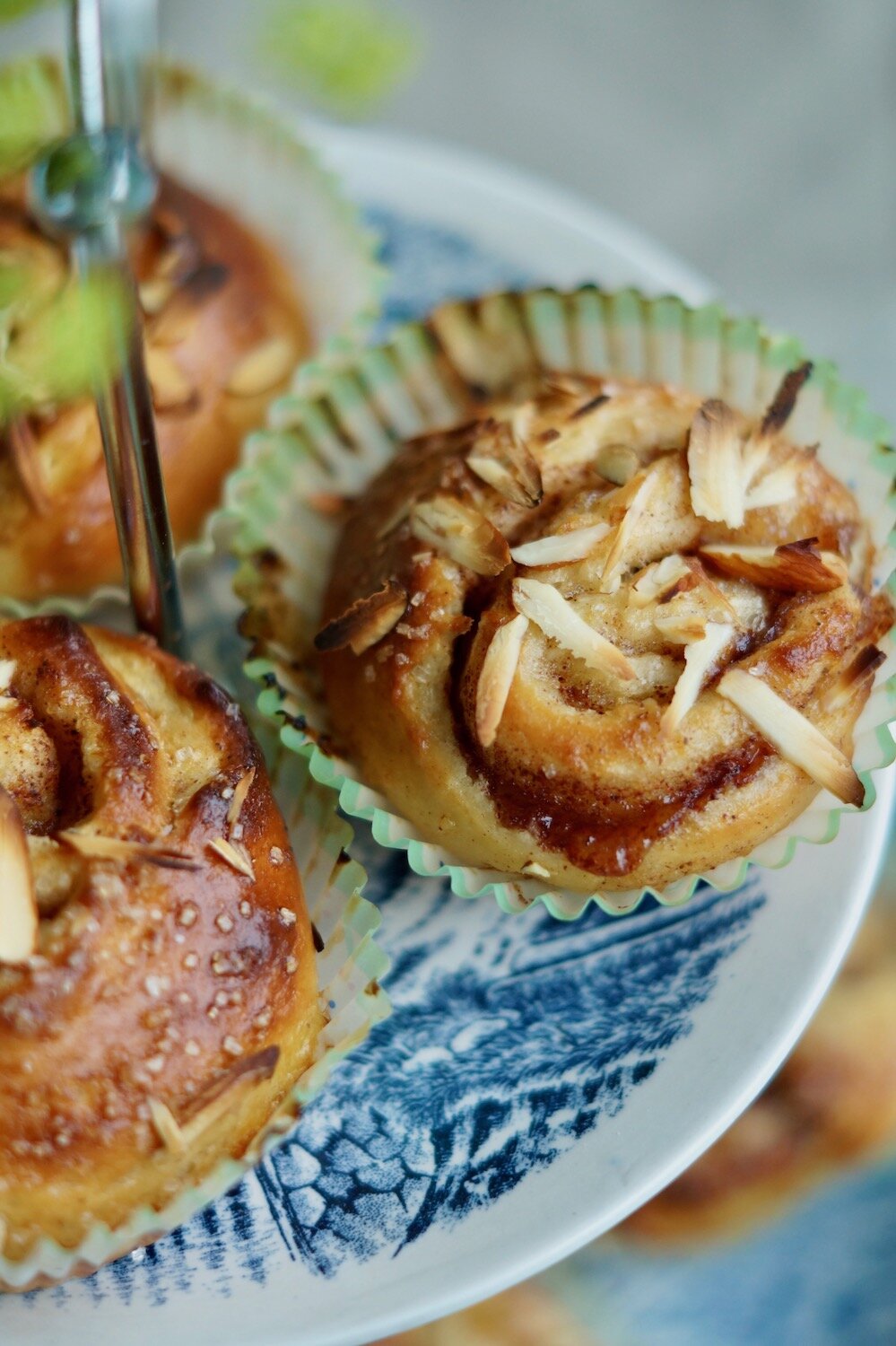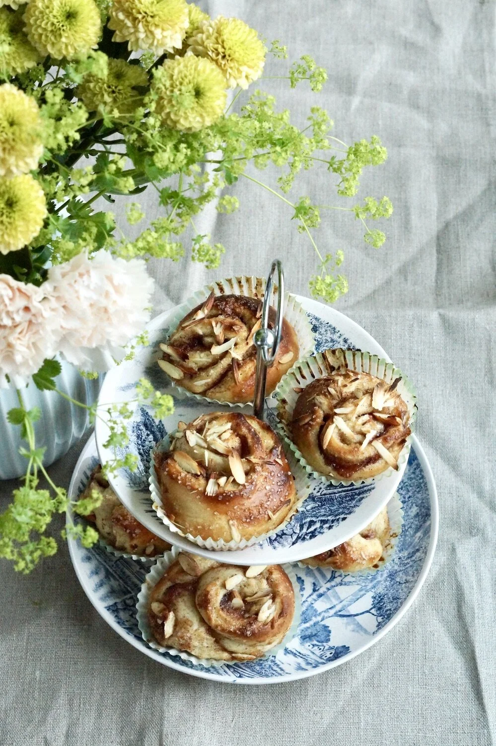 Nå begynner eplene å bli modne i hagen og da syntes jeg det var på tide å bruke opp eplesyltetøyen jeg lagde forrige år, slik at jeg kan lage ny. Derfor lagde jeg disse kanelbollene med eplefyll. Man trenger ikke ha noe sukker i fyllet fordi eplesyltetøy inneholder mye sukker. Hvert fall den jeg lager selv.