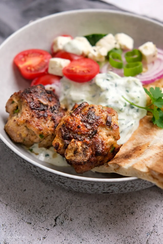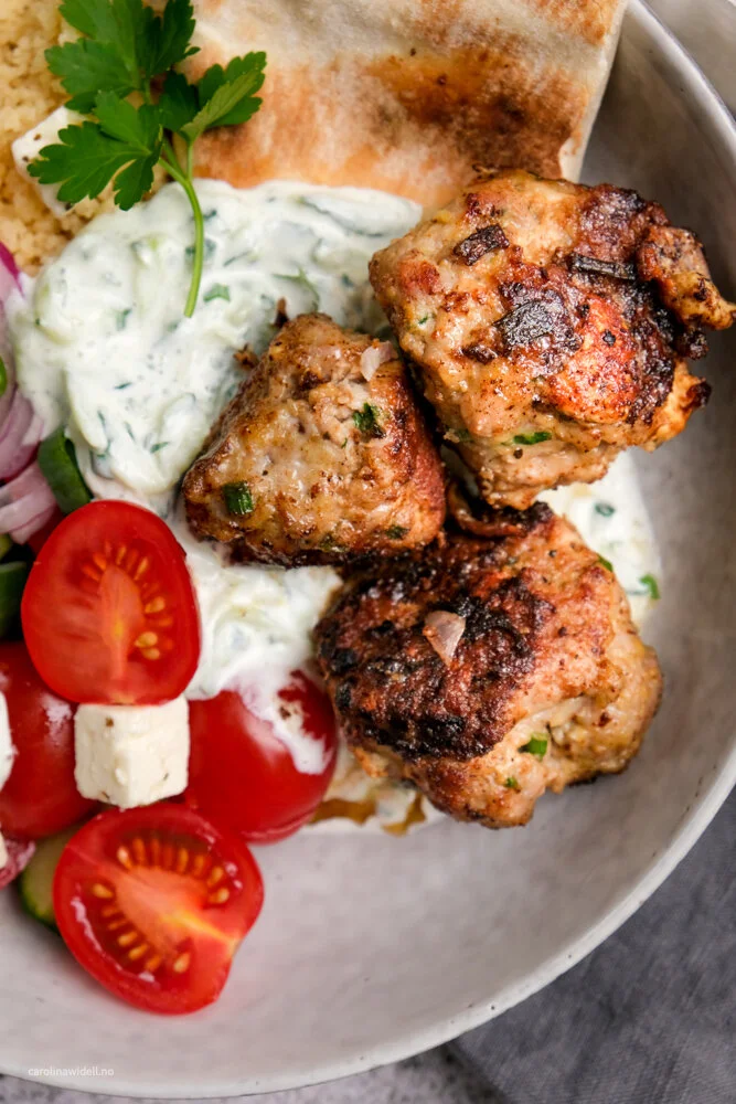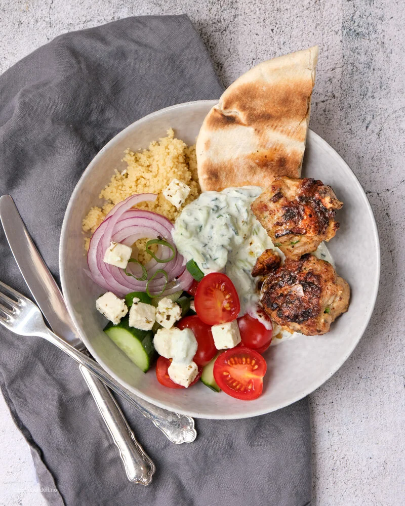 Nå er det sesong for lamm, den sesongen er ganske kort så det gjelder å passe på å kjøpte norsk fersk lamm nå. I helgen lagde jeg disse nydelige greskinspirerte kjøttbollene av lammekjøttdeig. Som tilbehør hadde jeg tzatziki, cous cous og litt gresk salat.