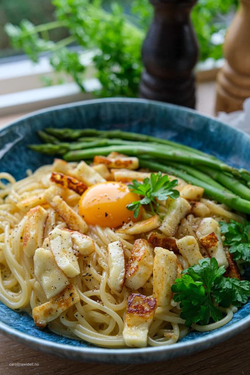 Dette er vel egentlig ganske langt fra en klassisk Carbonara egentlig🙈Men det smaker hvert fall litt likt, og veldig godt.