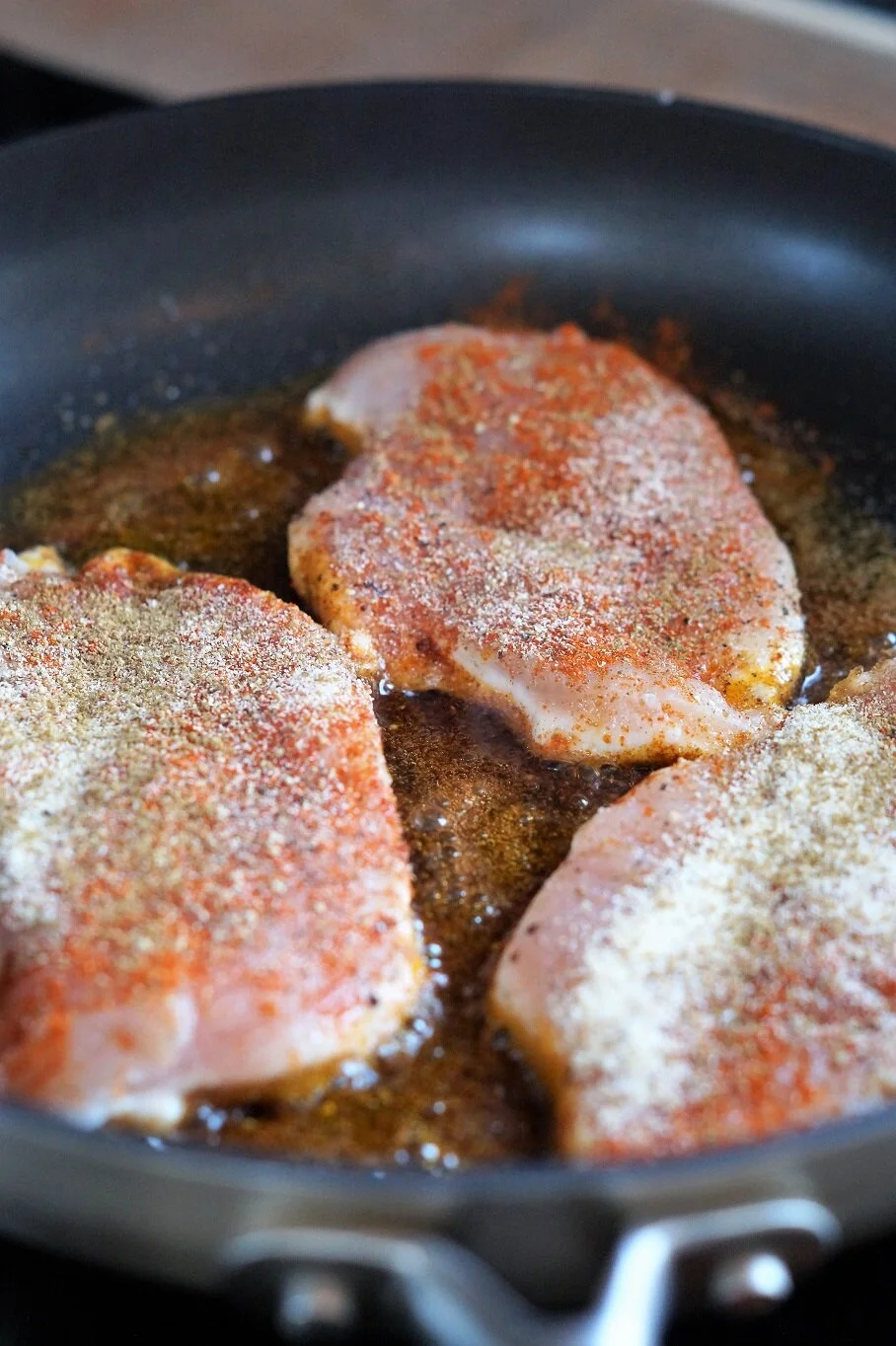 Krydre kyllingen med salt, paprikapulver, løkpulver, pepper og litt spisskummen.