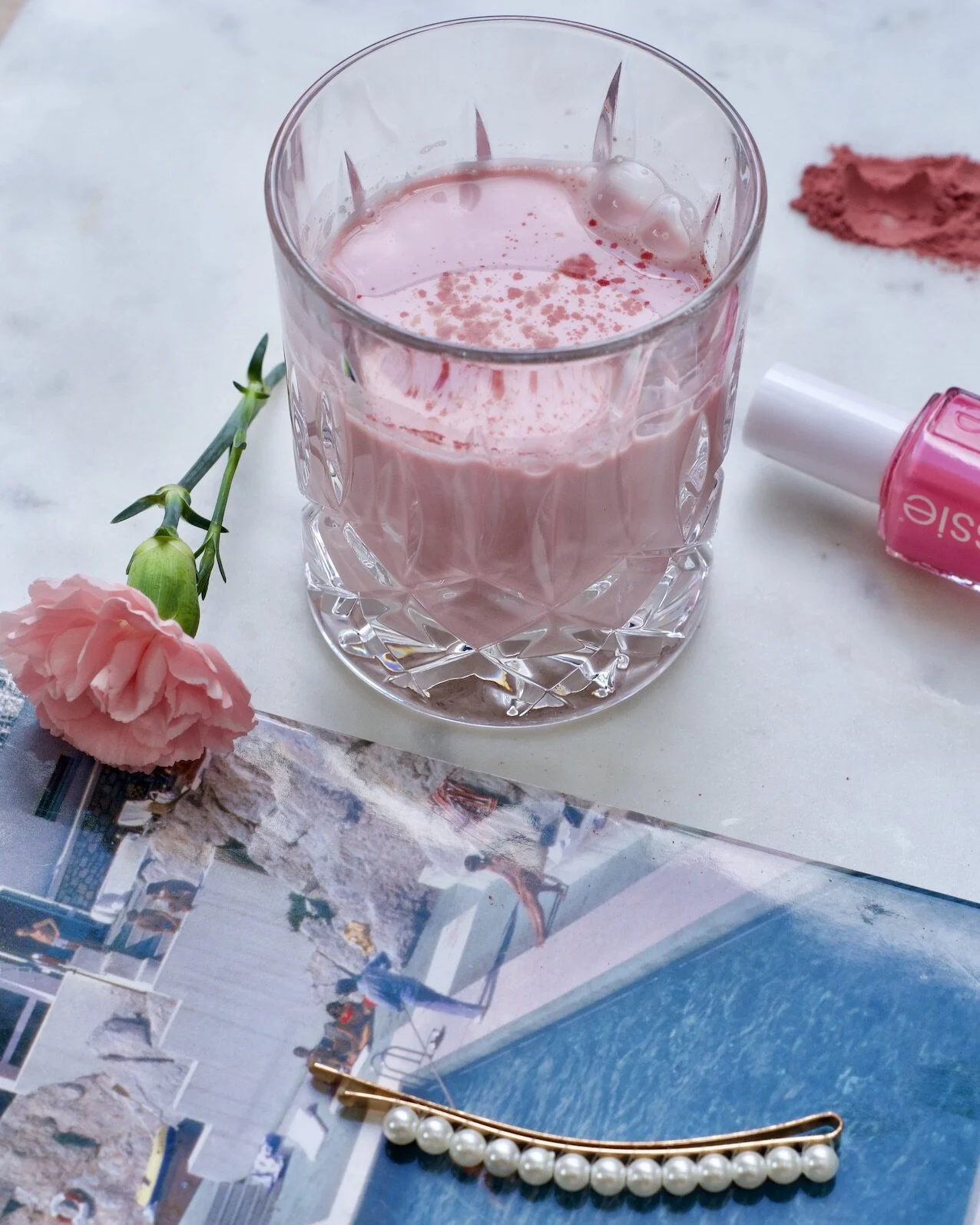 Man kan bruke både rødbetejuice eller rødbetepulver. Fordelen ved å bruke pulver er at rødbetesjuice kan ha litt jordsmak, noe som jeg syns pulver ikke har. Fargen blir uansett fantastisk. Man kan bruke den melken man liker best. Jeg foretrekker mandelmelk til dette. Jeg har også prøvd å lage islatte, noe som er kjempegodt.