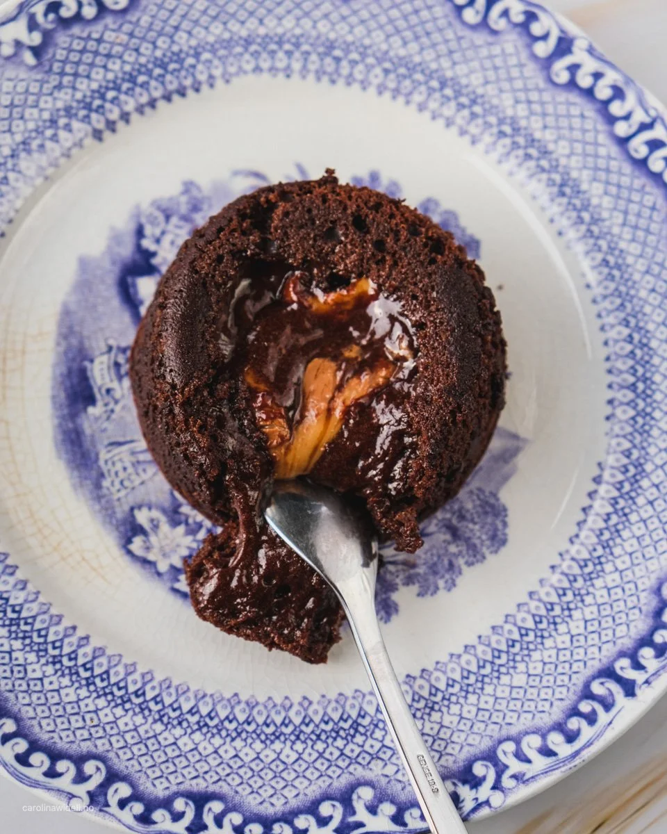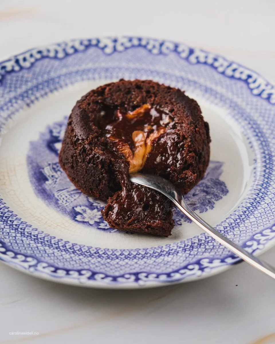 Sjokoladefondant er enkelt å lage, det eneste som er vanskelig er egentlig tiden den skal stå inne for å bli perfekt rennende i midten. Hvis du steker de for lenge blir det bare en vanlig, men for så vidt god sjokoladekake. Har man vel lykkes med å få en rennende fondant er det en ganske imponerende dessert som de aller fleste liker. Jeg puttet også noen Dumle, altså karamellen Dumle i mine sjokoladefondanter. Det ble jo ikke feil…😂🤷🏼♀️