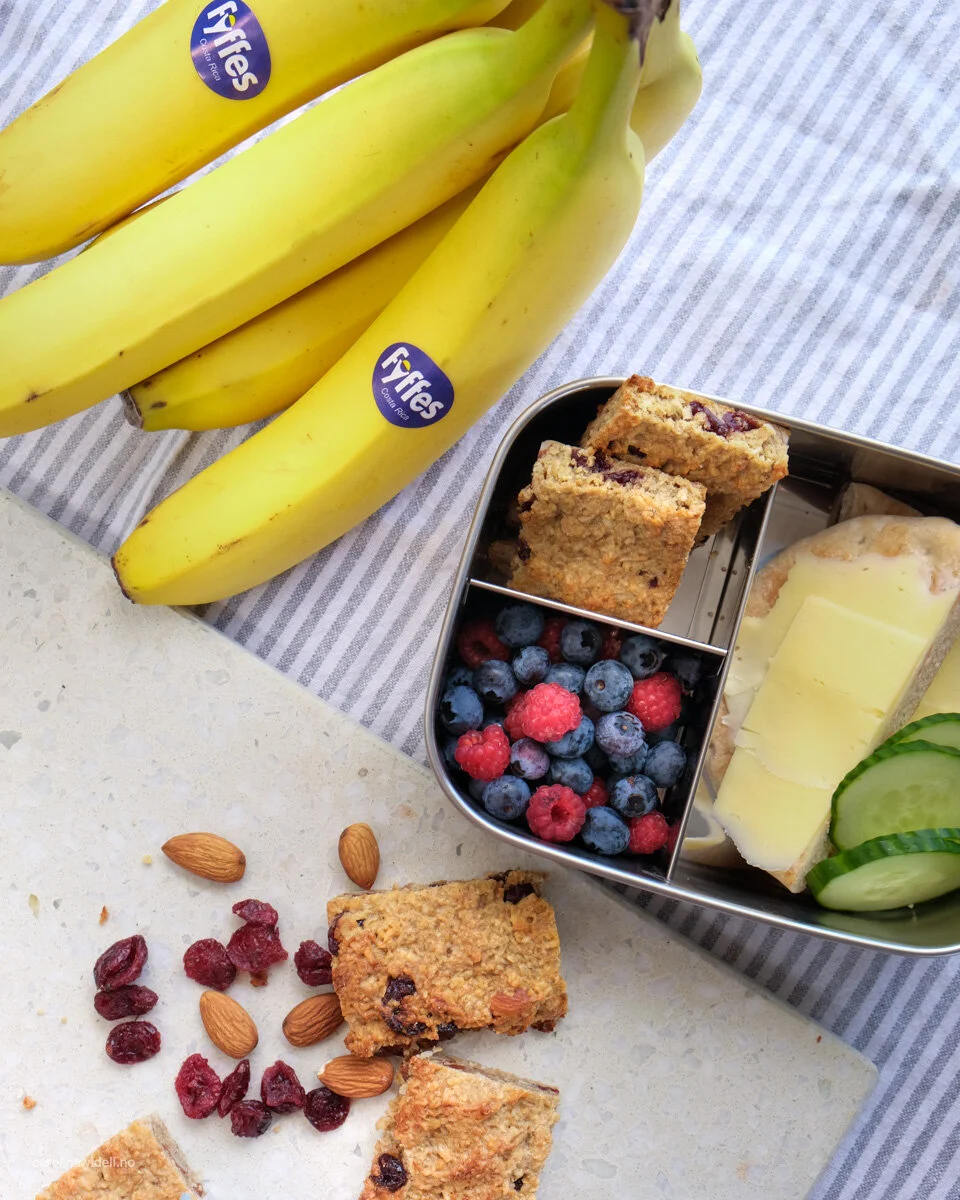 Muslibarer er populære i matboksen. Her er en litt sunnere, hjemmelaget variant som er laget med bananer, kokos, tørket frukt og nøtter. Barna får de i matboksen og jeg selv pleier å ha det som kl 14.00 snack på jobb, for å forhindre lavt blodsukker!